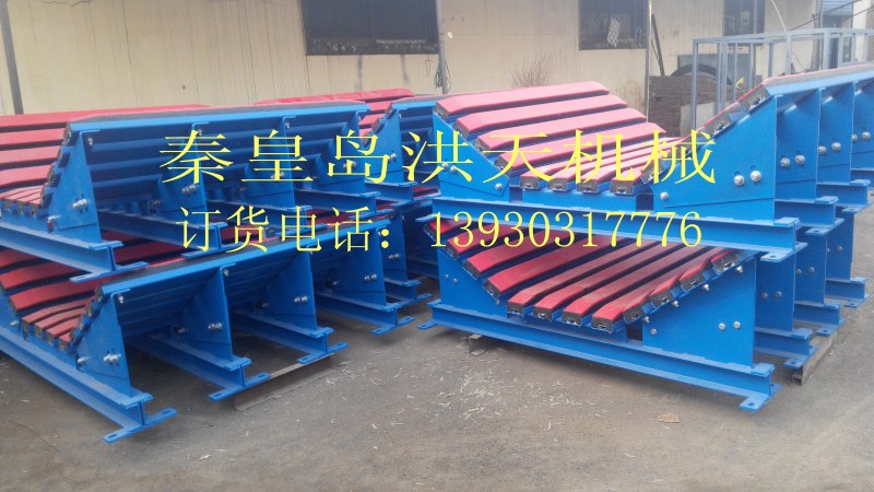 緩沖床主要用于替代緩沖托輥,緩沖床由緩沖條組成,而緩沖條主要應(yīng)用優(yōu)良的高彈性特種橡膠層充分有效吸收了物料下落時的沖擊力,大大降低了物料下落時對輸送帶的沖擊,真正的改善了落料點(diǎn)的受力狀況。并采用特殊的UHMW高分子聚乙烯表面,使輸送帶與緩沖條之間的摩擦系數(shù)降到最低,且耐磨性好。緩沖床的使用保證了輸送帶的面與面的接觸,受力均勻,有效防止了由于托輥斷裂、脫落造成的皮帶縱向撕裂,同時大大降低了皮帶被銳器或尖銳物料穿透后縱向撕裂的概率。