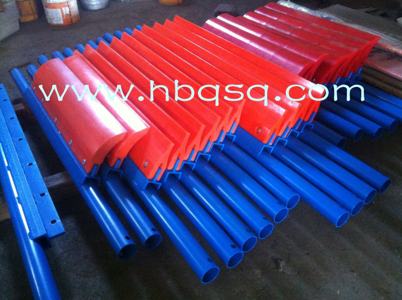 聚氨酯清掃器主要作用是清掃運輸皮帶表面的附著物,在輸送機上有著不可忽視的作用,靠皮帶傳動的生產(chǎn)線基本都需要靠它來對皮帶或輸送帶進行清掃。